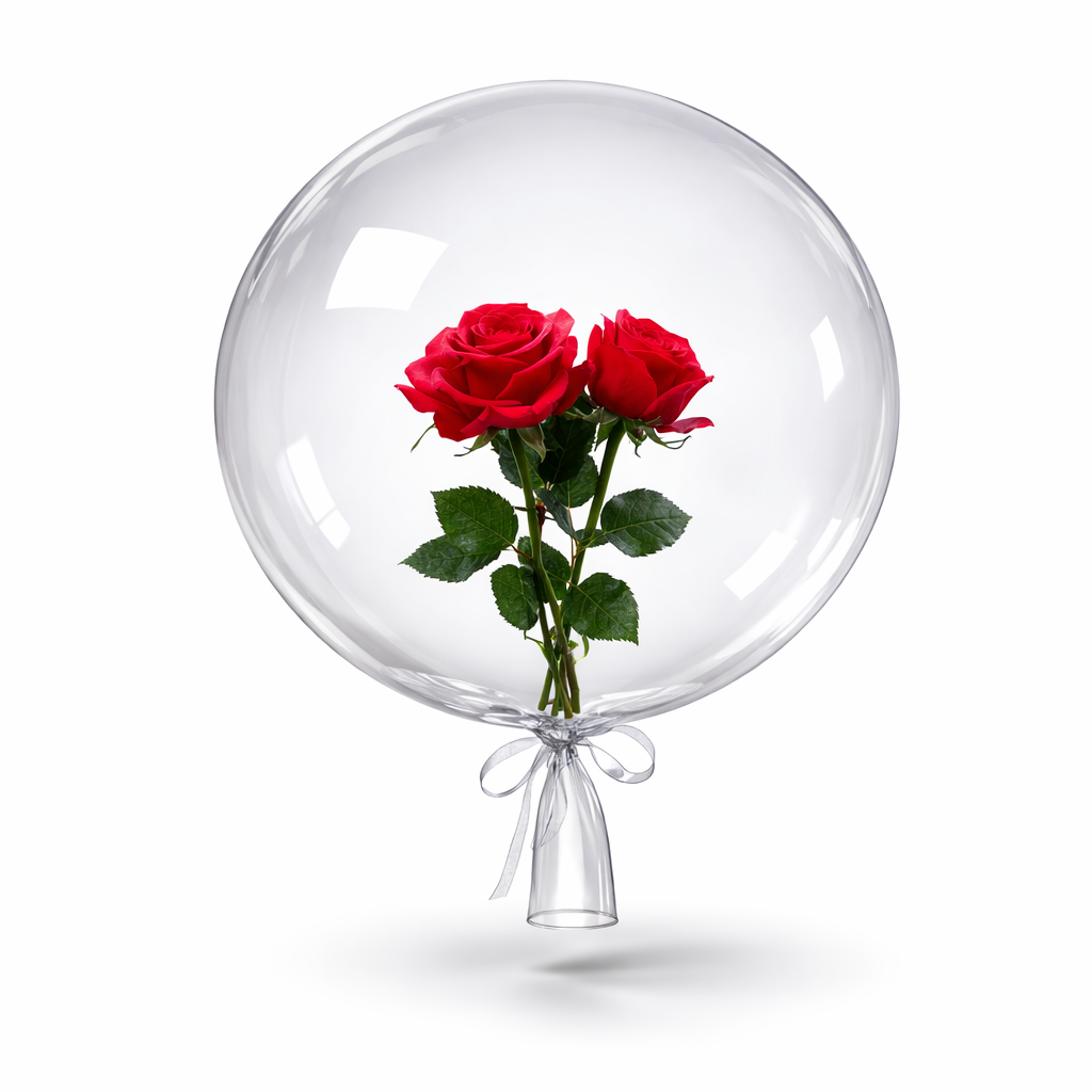 Baloni ka fund transparent me lidhëse dekorative, që i jep një pamje të pastër dhe moderne. Ideale për: