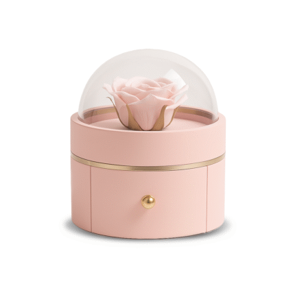 Kutia ekskluzive për unaza me dizajn elegant dhe lule 3D në brendësi. Material plastik me tekstil luksoz brenda.