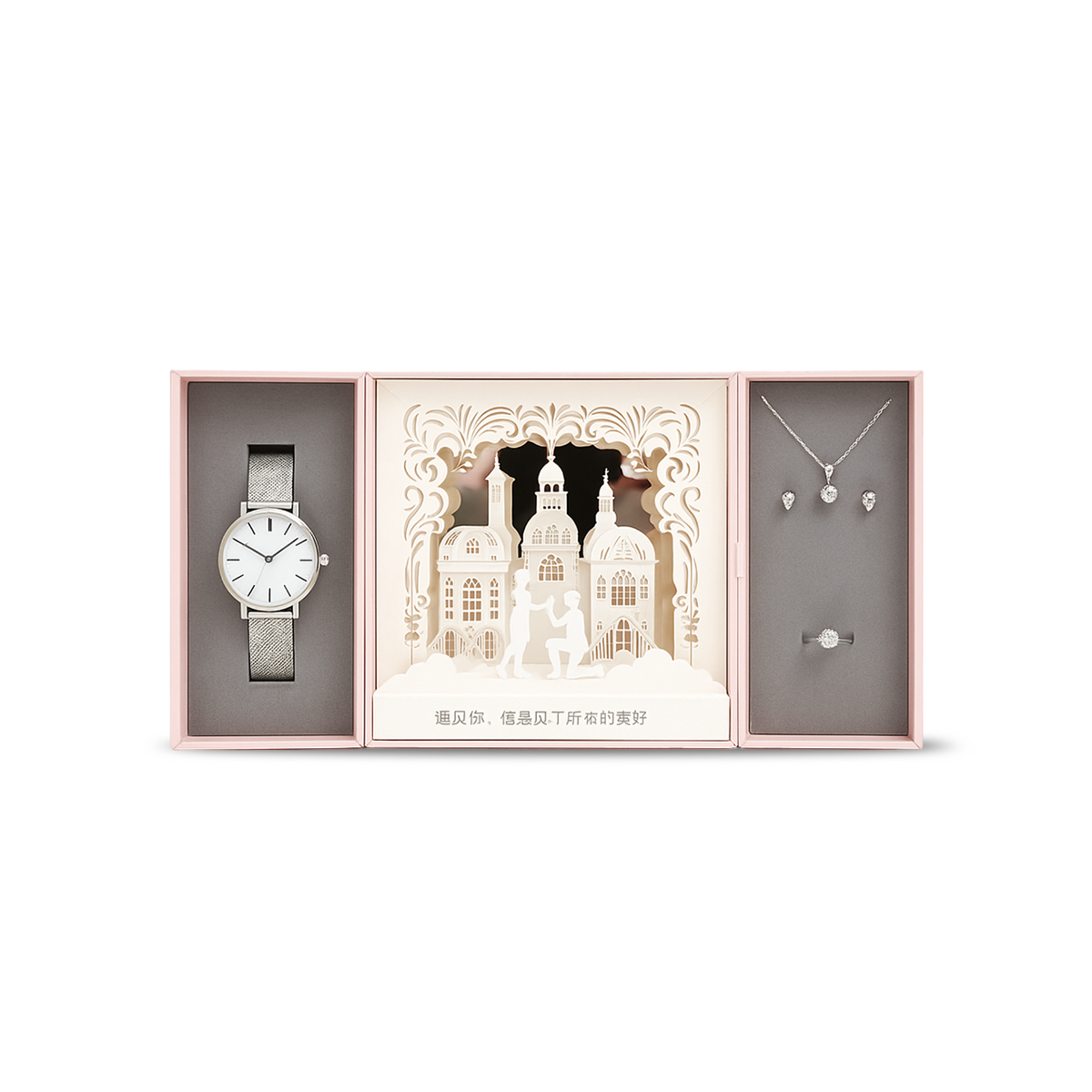 Shndërrojeni çdo dhuratë në një moment të paharrueshëm me këtë kuti luksoze premium, e dizajnuar posaçërisht për bizhuteri, orë, aksesorë dhe dhurata të veçanta. Me një stil elegant në ngjyrë rozë pastel dhe detaje artistike, kjo kuti është zgjedhja perfekte për raste romantike dhe ditë të rëndësishme.