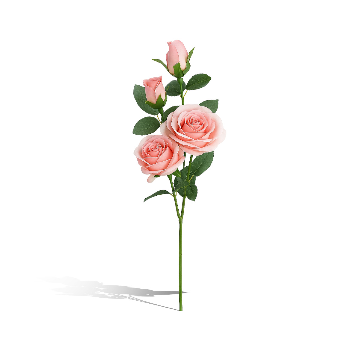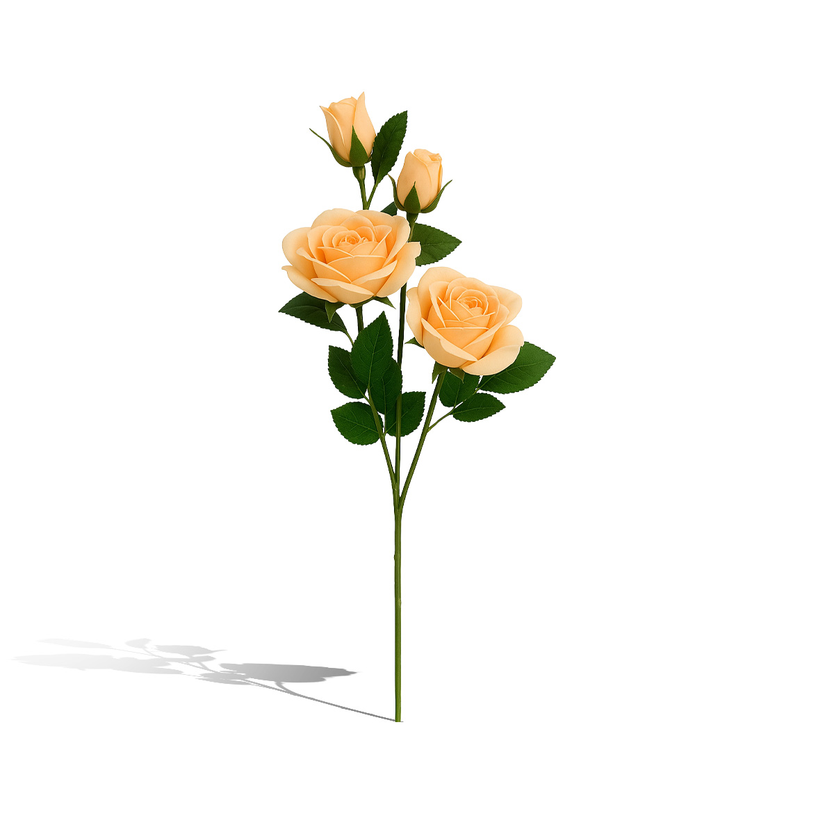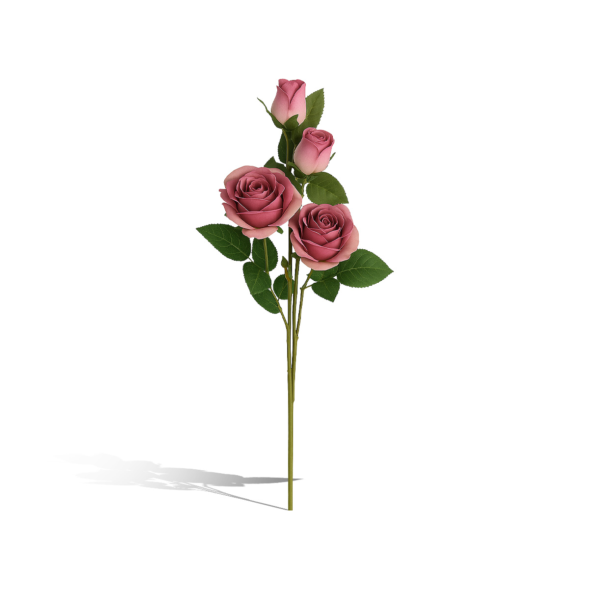 Ky model përfshin tre lule në një degë – dy të çelura dhe një syth – duke krijuar një pamje harmonike që përshtatet në çdo vazo apo buqetë dekorative.