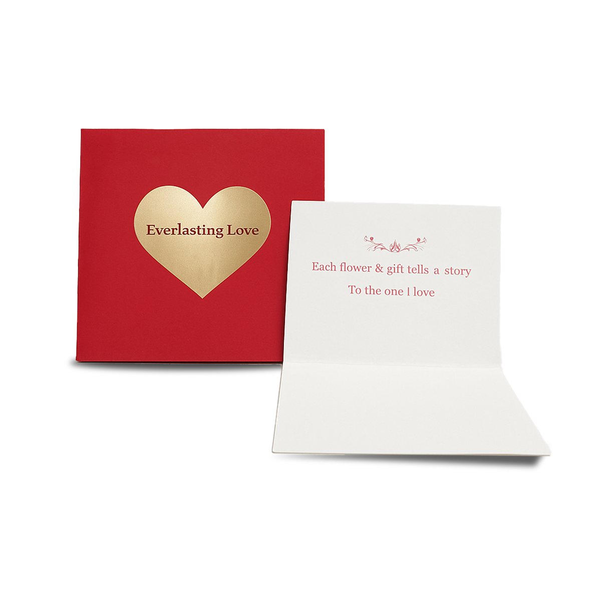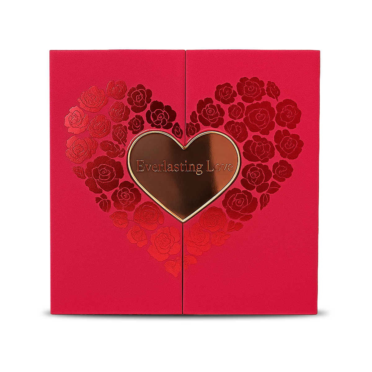 Një kuti dhurate luksoze dhe romantike me dizajn të kuq elegant dhe zemër të artë me mbishkrimin “Everlasting Love”. E përkryer për të përmbajtur bizhuteri, trëndafila apo surpriza të veçanta që shprehin dashurinë tuaj në mënyrën më të bukur.