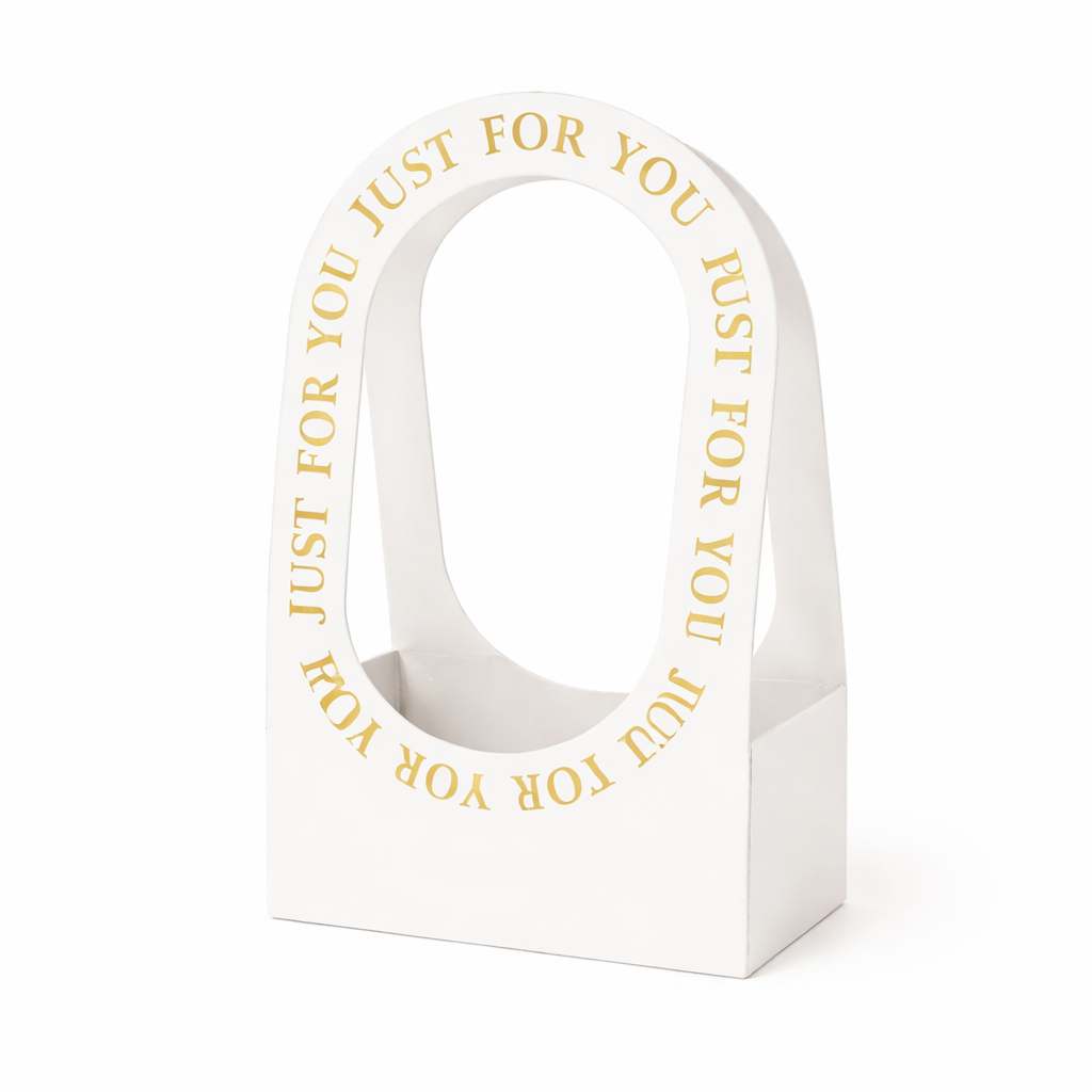 Qese luksoze me mbishkrimin elegant “Just For You” në ngjyrë ari. Ideale për paketim dhuratash, aranzhime lulesh dhe raste të veçanta që kërkojnë një prekje klasike dhe moderne.
