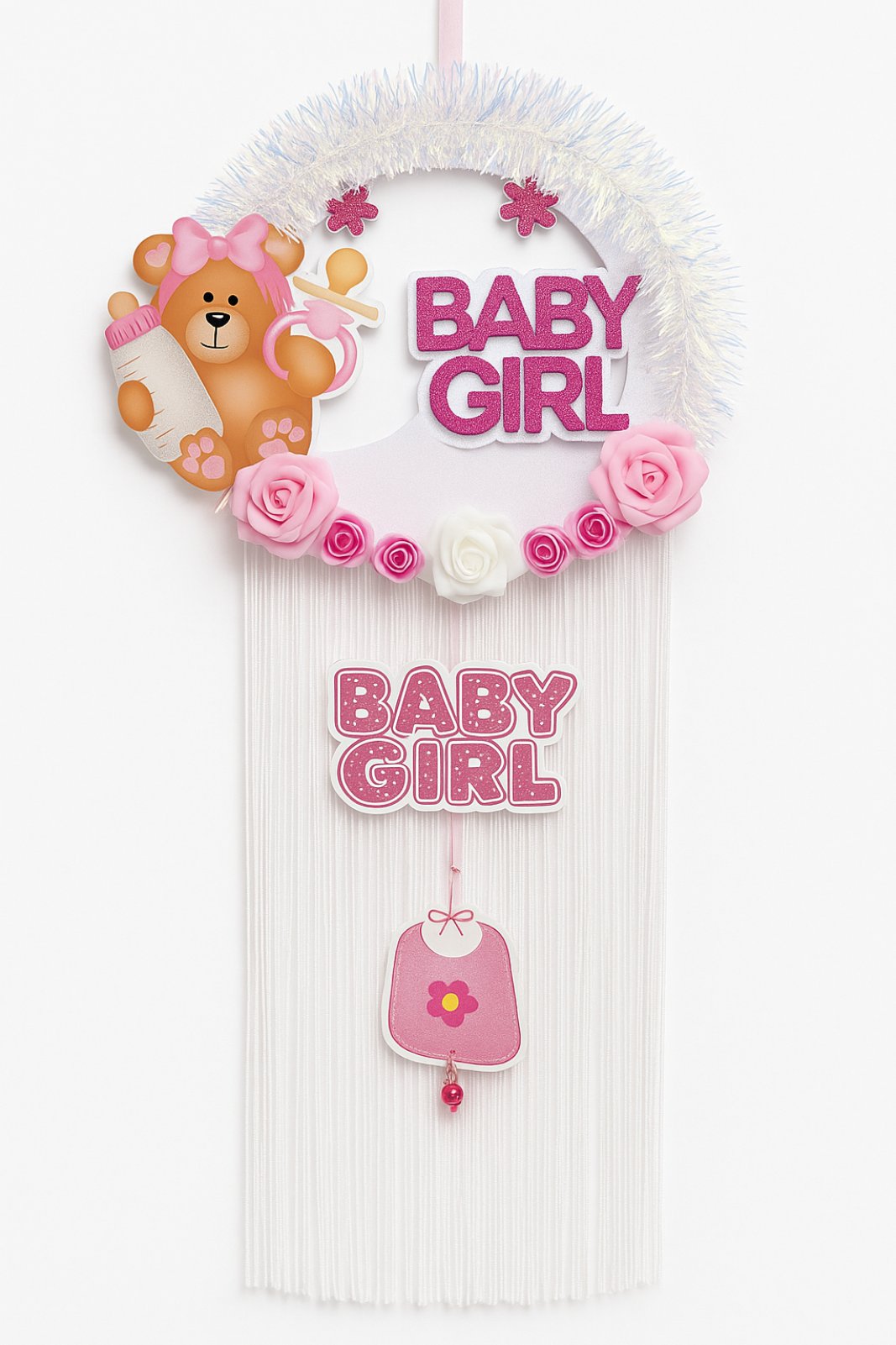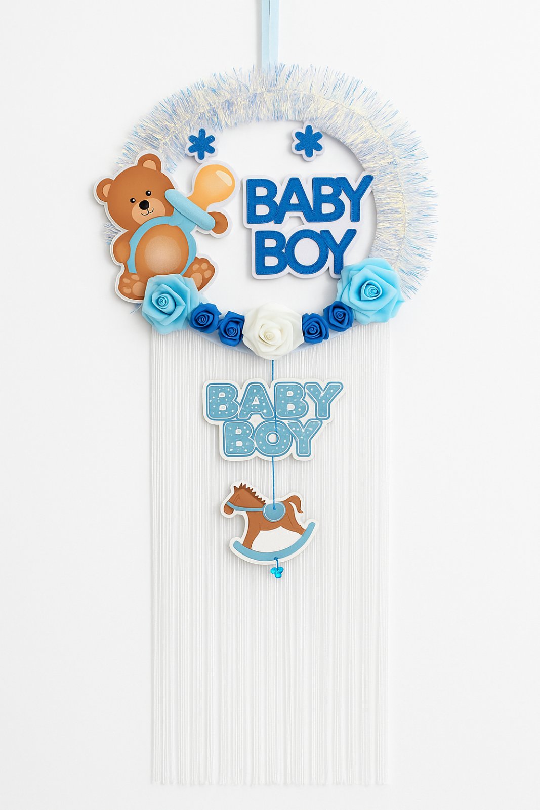 Dekor i mrekullueshëm për baby shower apo dhomë bebeje, në versionet Baby Boy dhe Baby Girl, me ari lodër, trëndafila dekorativë dhe detaje varëse elegante. Jep një ndjesi ngrohtësie, gëzimi dhe dashurie në çdo ambient.
