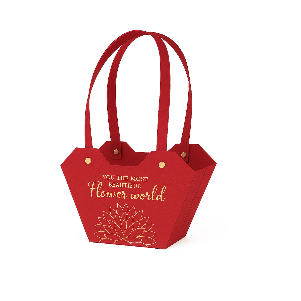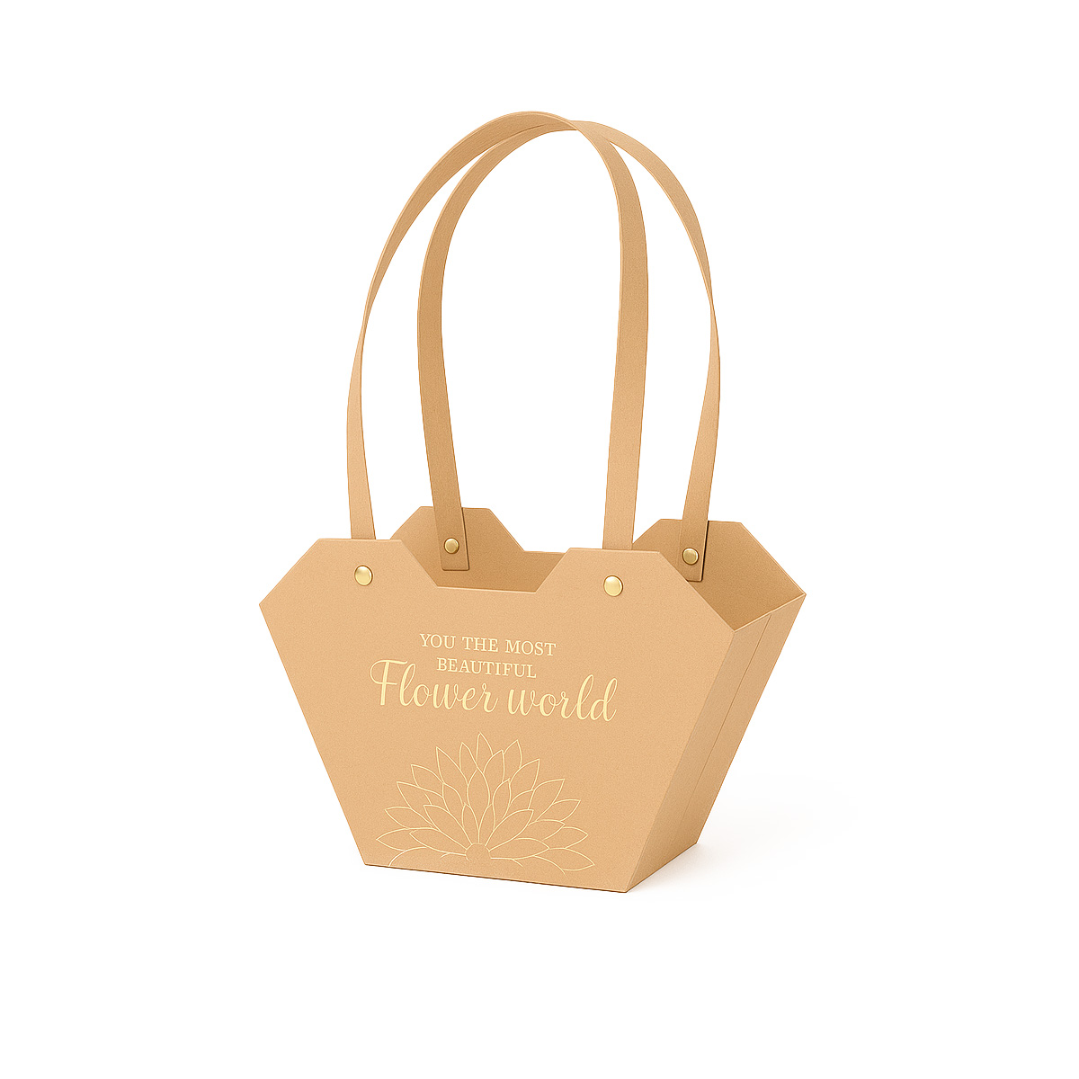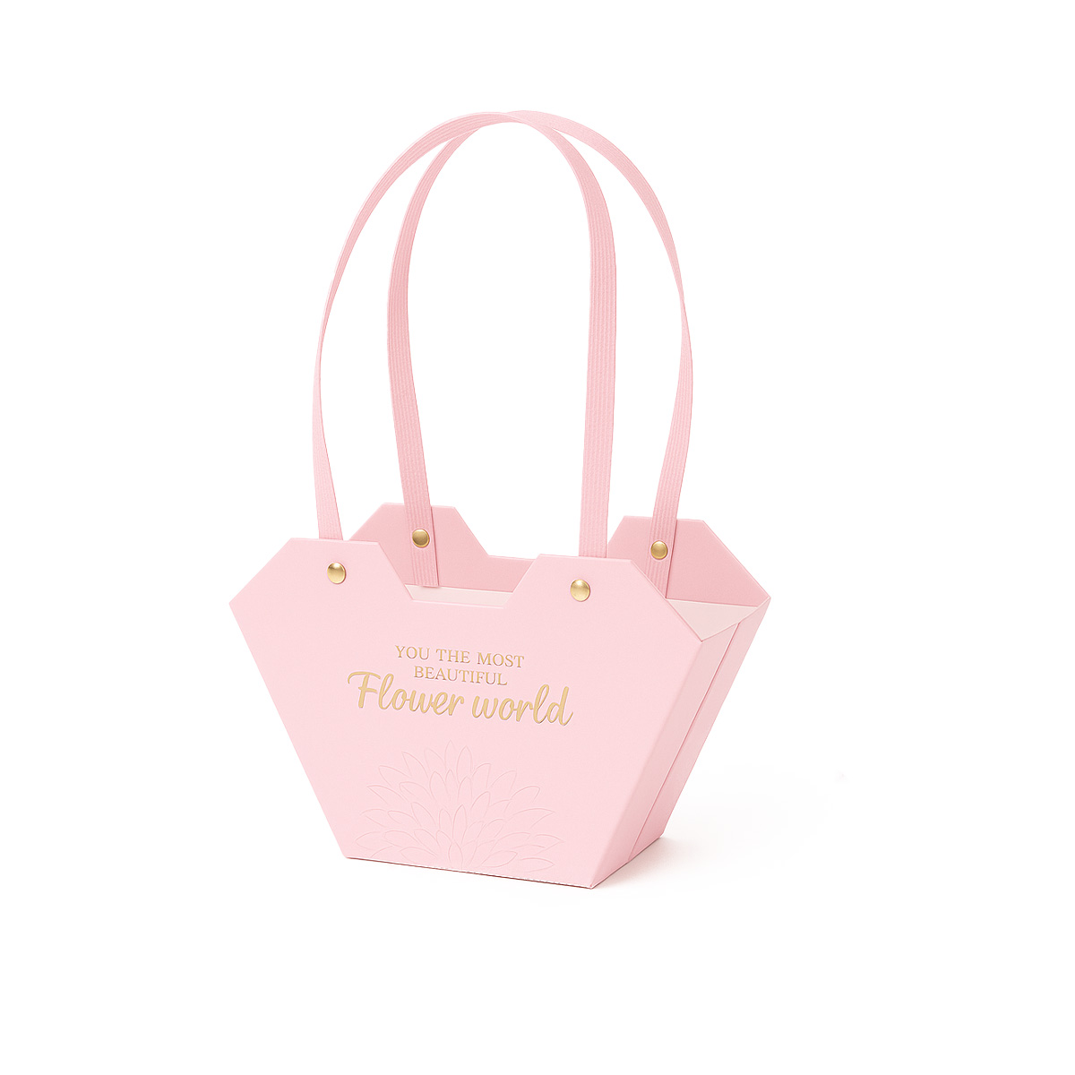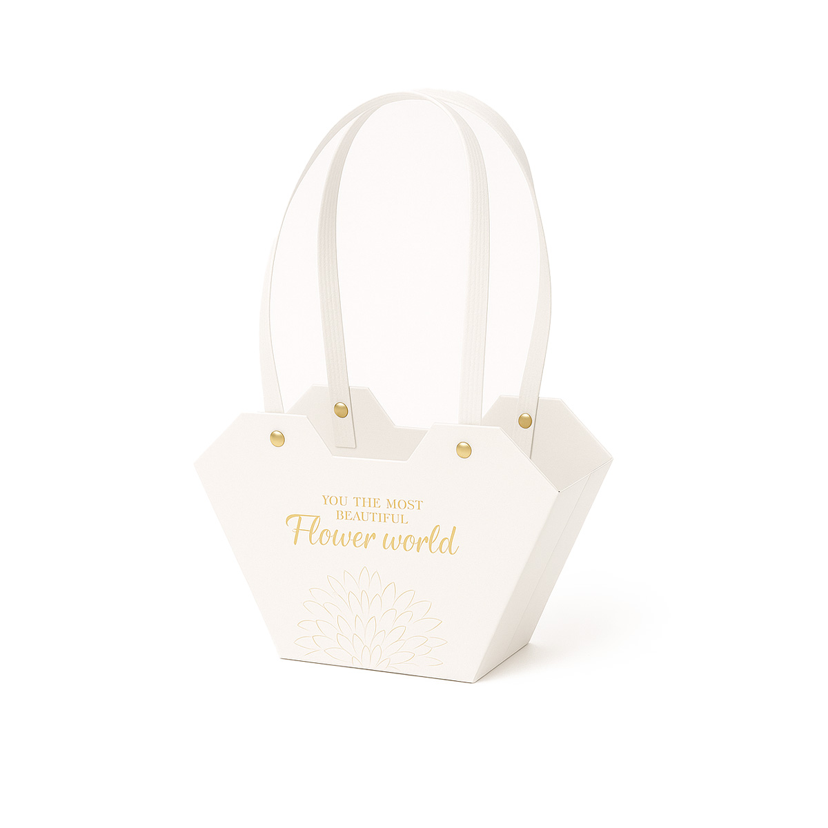 Një qese elegante dhurate, ideale për prezantimin e luleve, dhuratave apo dekorimeve të vogla. Me dizajn modern dhe mbishkrim të artë “You the most beautiful Flower world”, kjo qese shton hijeshi në çdo dhuratë.