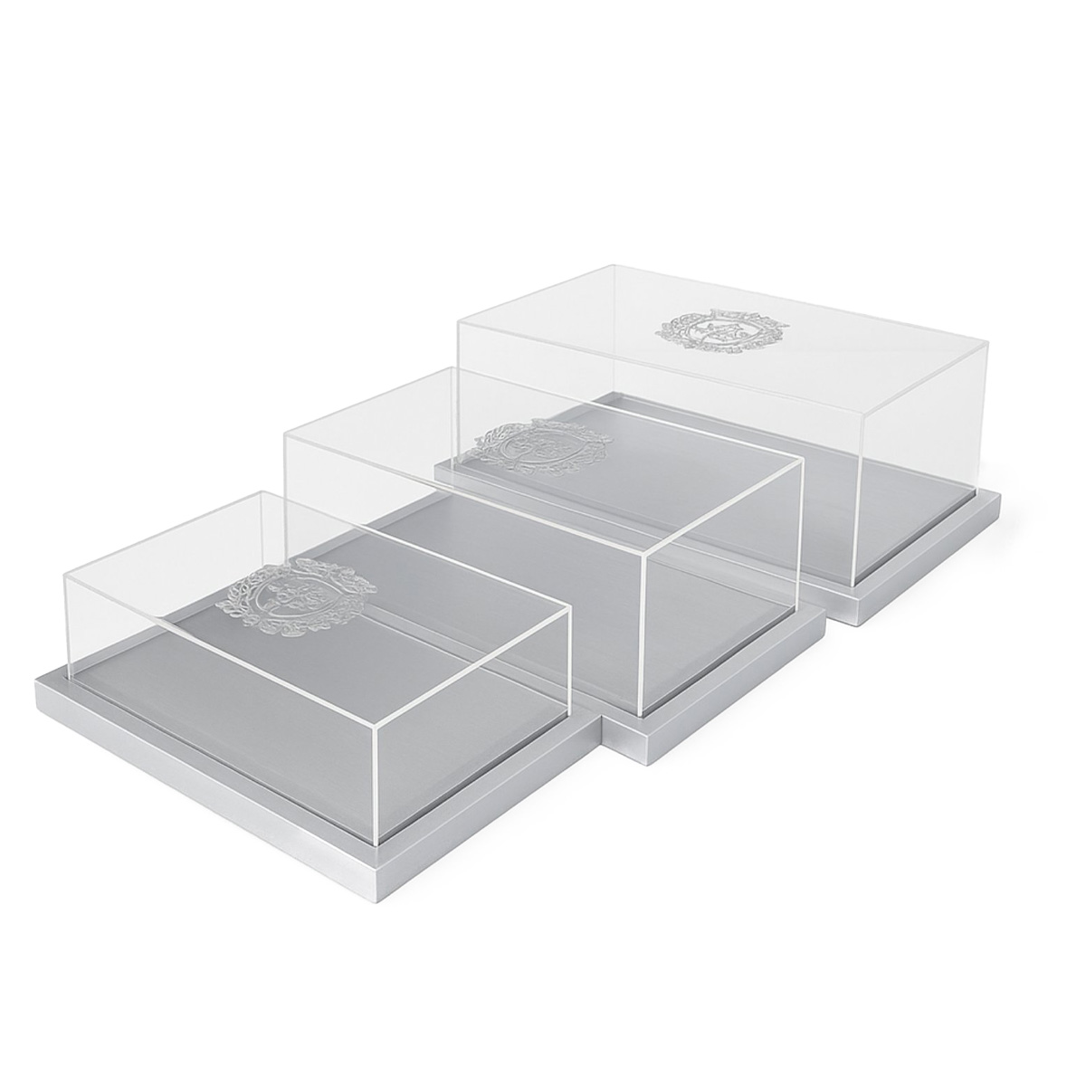 Shtoni një prekje elegance dhe luksi në çdo prezantim me këtë set prej tre kutish akrilike.