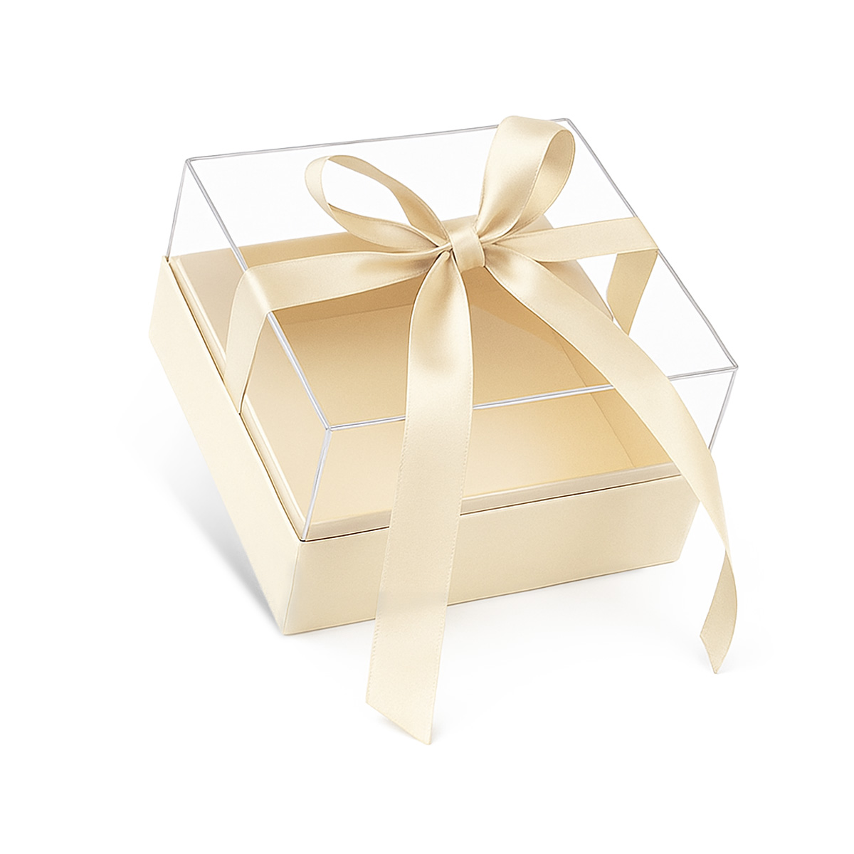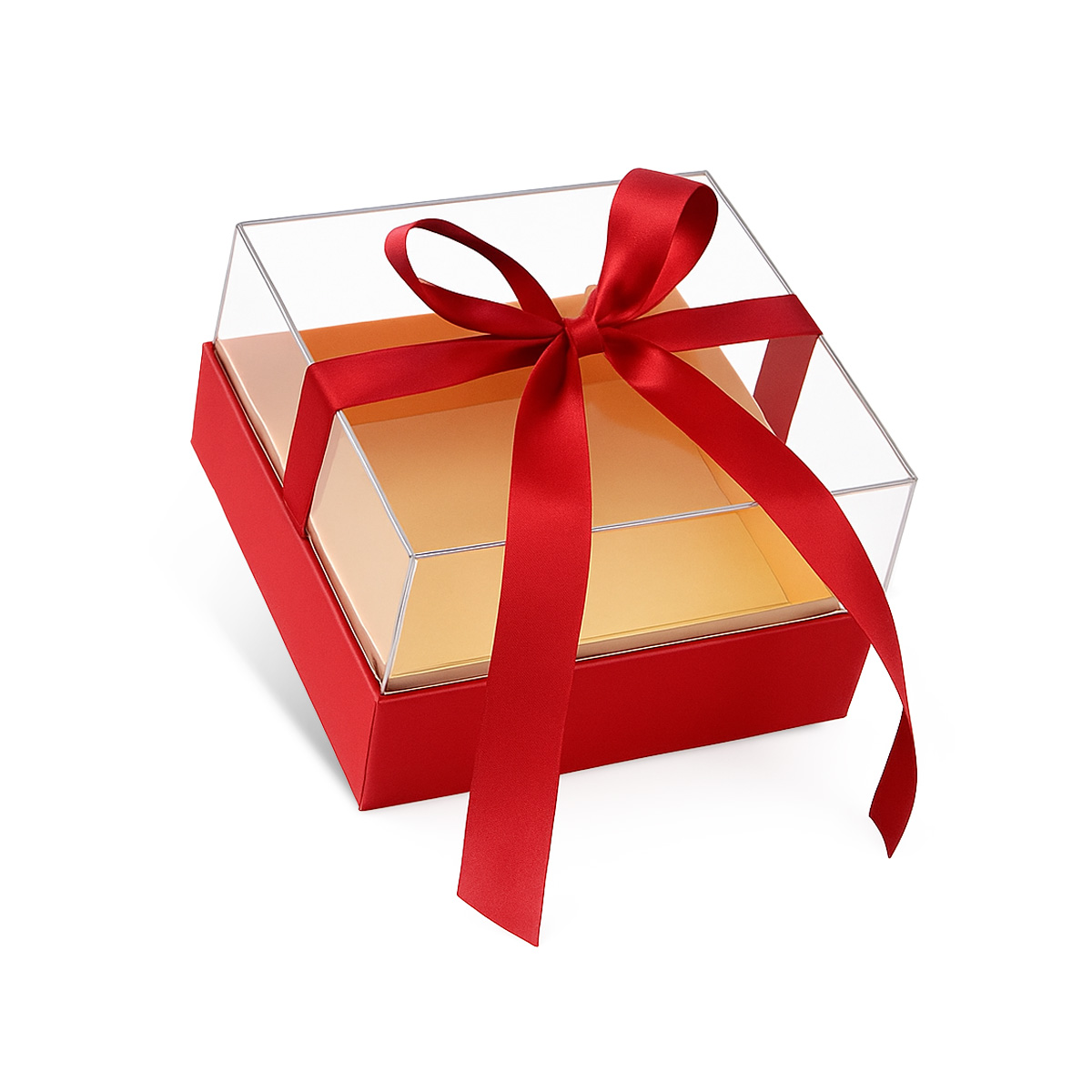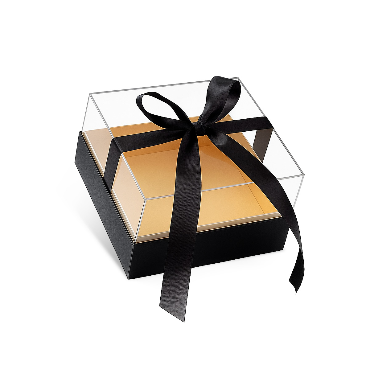 Sill elegancë dhe klas në çdo prezantim dhurate me këtë kuti luksoze me kapak transparent dhe fjongo sateni.