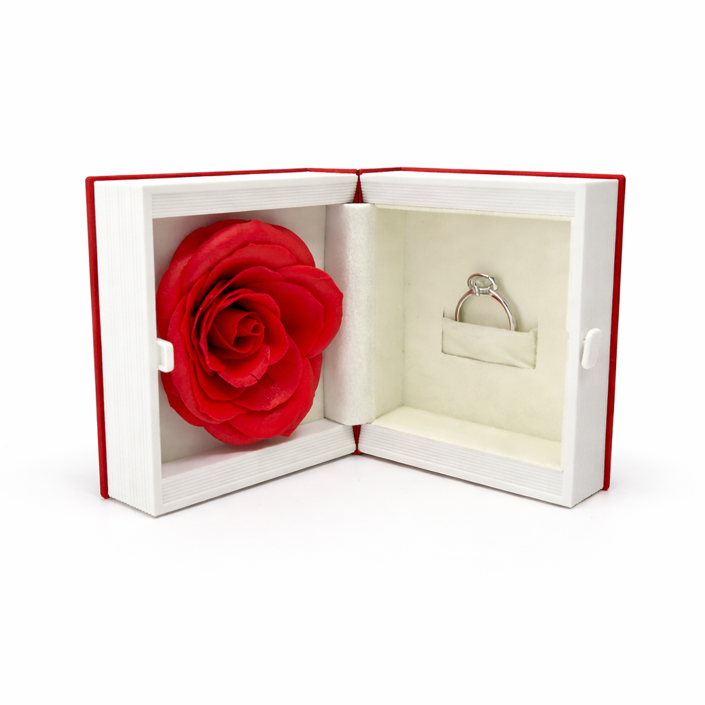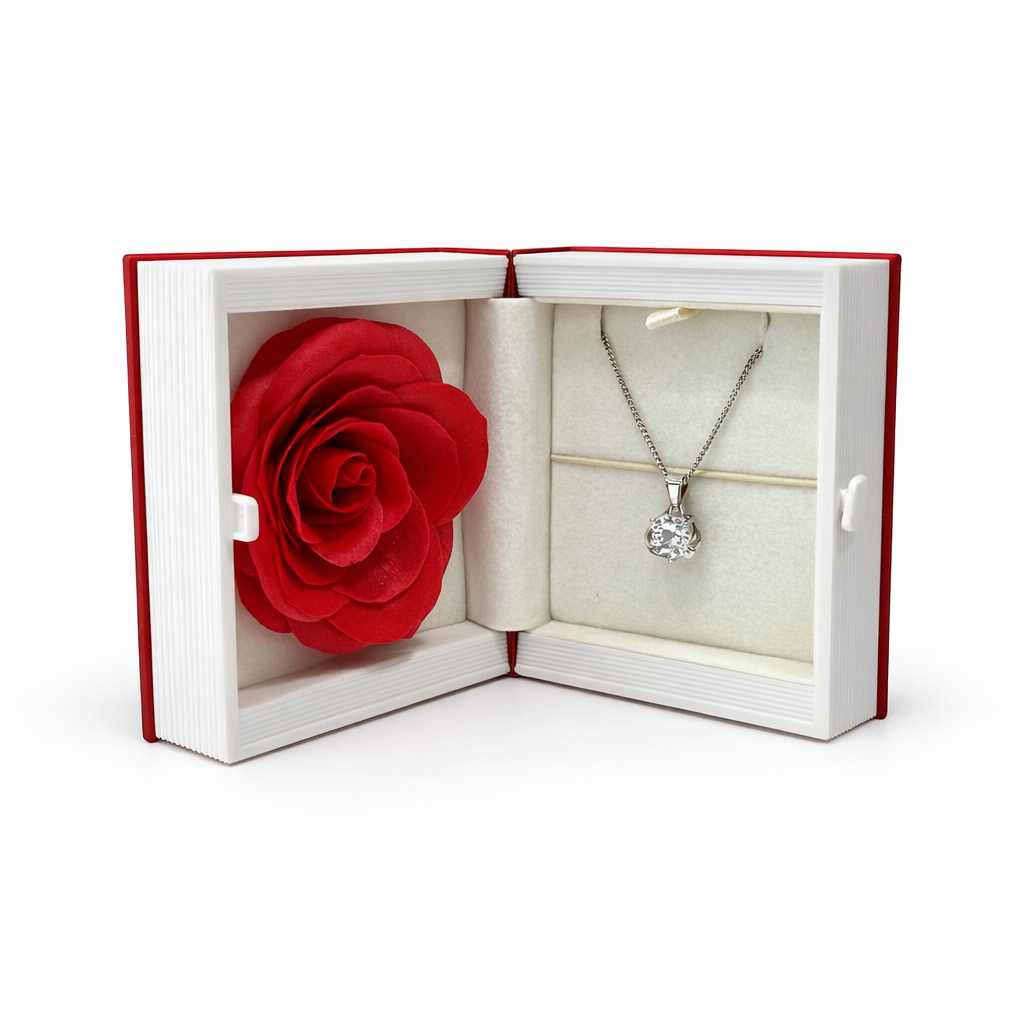 Një paketim unik me dizajn në formë libri, i krijuar për të dhënë një eksperiencë elegante dhe romantike që në momentin e hapjes.