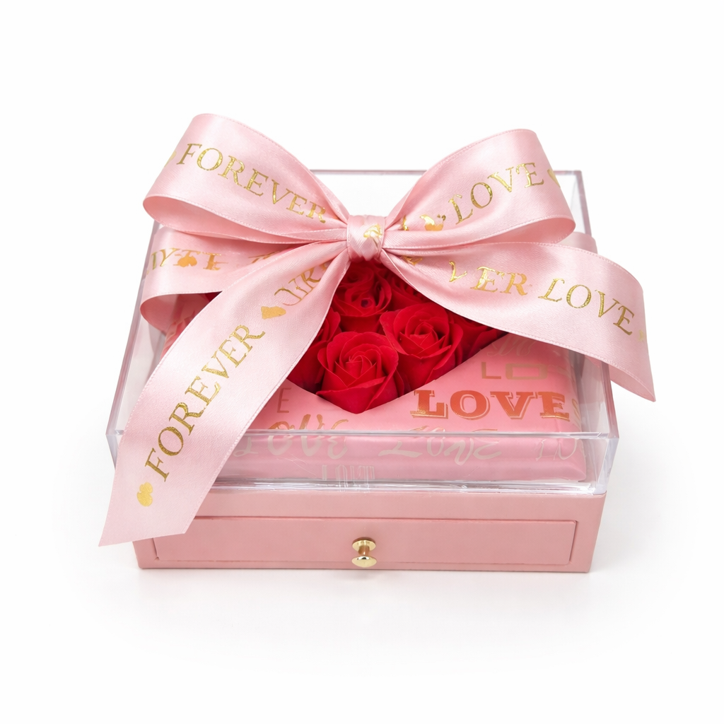 Ky paketim jo vetëm që mbron produktin, por krijon një eksperiencë hapjeje shumë të veçantë – nga trëndafilat romantikë deri te momenti kur zbulohet bizhuteria brenda.